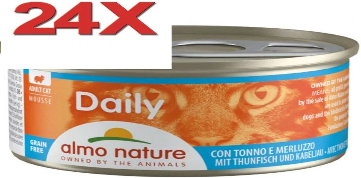 Almo Nature Dailymenu – Kattenvoer Blik – Mousse Tonijn & Kabeljauw – 24x85gr