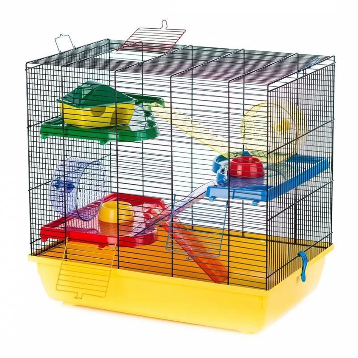 Hamsterkooi Teddy 2 GIGANT van Duvo+ is een vrolijk gekleurde ruime kooi met diverse extra’s voor hamsters en muizen. De kooi meet 58x38x55 centimeter en kent maar liefst 3 extra verdiepingen, wordt geleverd met een heleboel toebehoren. Door het formaat kunt u, mits de soort het toe laat, meerdere dieren huisvesten.