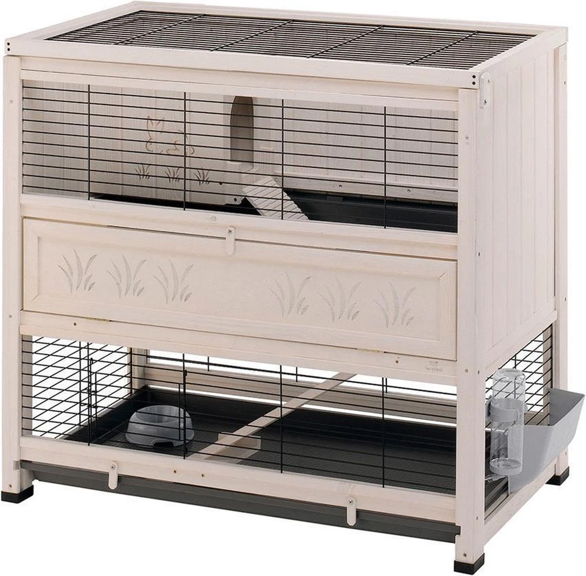 Let op: deze kooi is geschikt voor konijnen en is bedoeld voor binnenshuis.
