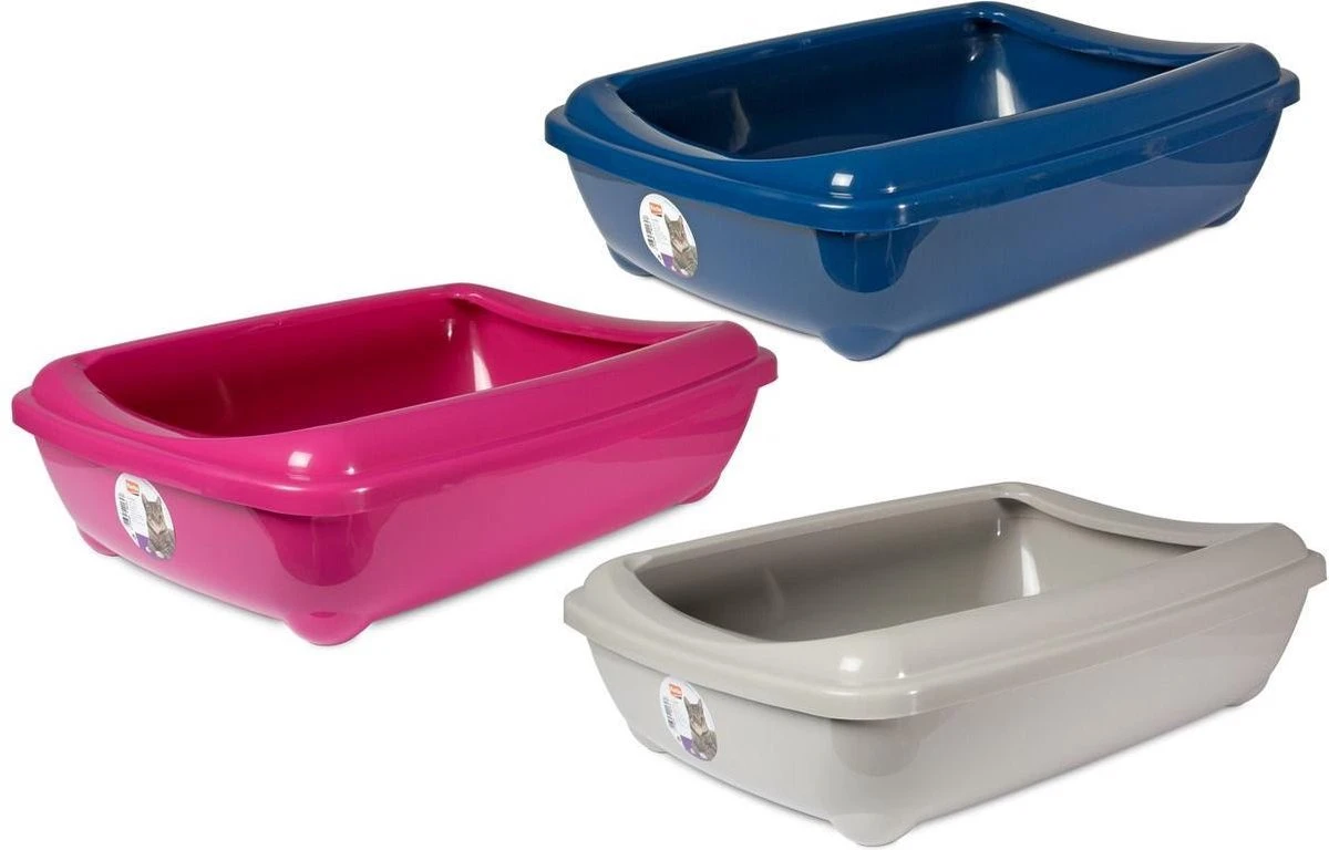 Standaard open kattenbak met rand tegen het knoeien. De kattenbak wordt assorti geleverd helaas is er geen kleurkeuze mogelijk.