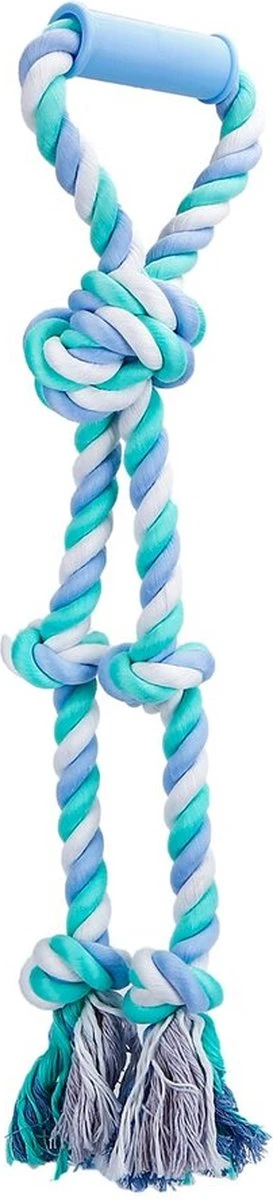 - Je kan de speeltouw vastpakken aan het kunststof handvat die je extra goede grip zal geven