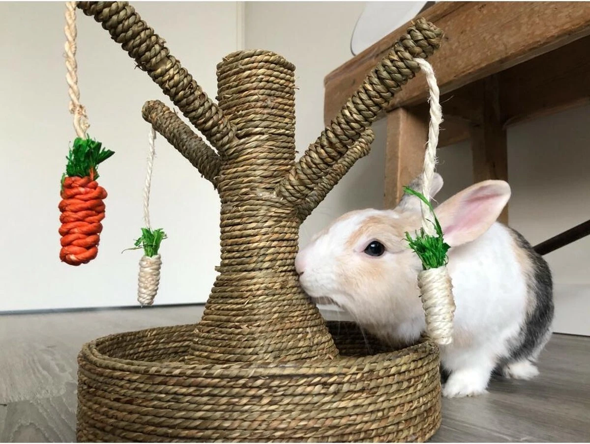 Deze leuke Rosewood Speelboom Met Wortels is veelzijdig speelgoed voor konijnen en cavia’s.