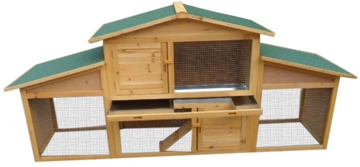 Dit hok biedt uw dieren een extra grote leefruimte en optimale bewegingsvrijheid.