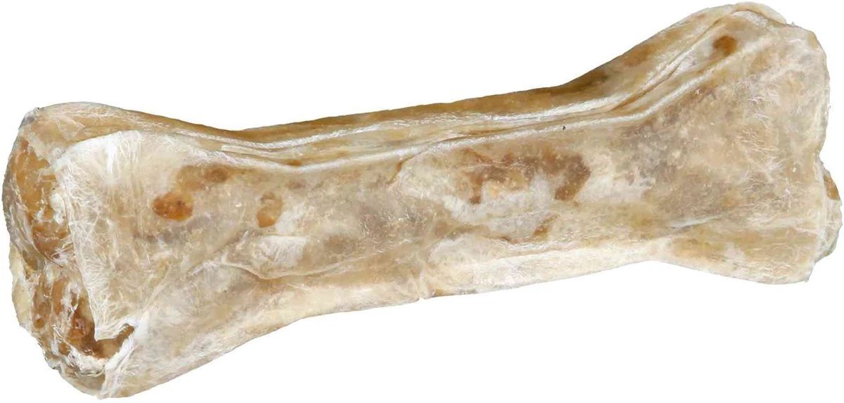 Voor de honden die verdienen om verwend te worden is er dit Kauwbot met Lam. Dit bot is gevuld met lam en heeft een gedroogd runderhuid.