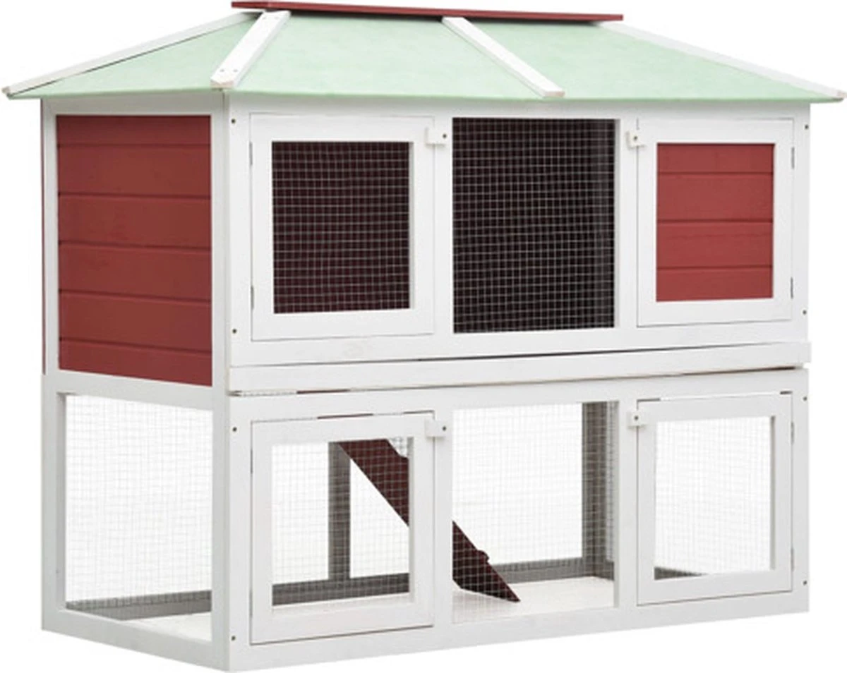 Dit hoogwaardige hok met 2 verdiepingen is de perfecte plek voor het houden van konijnen of kippen. Het biedt ruimte voor je dieren om te spelen, rennen en rusten.